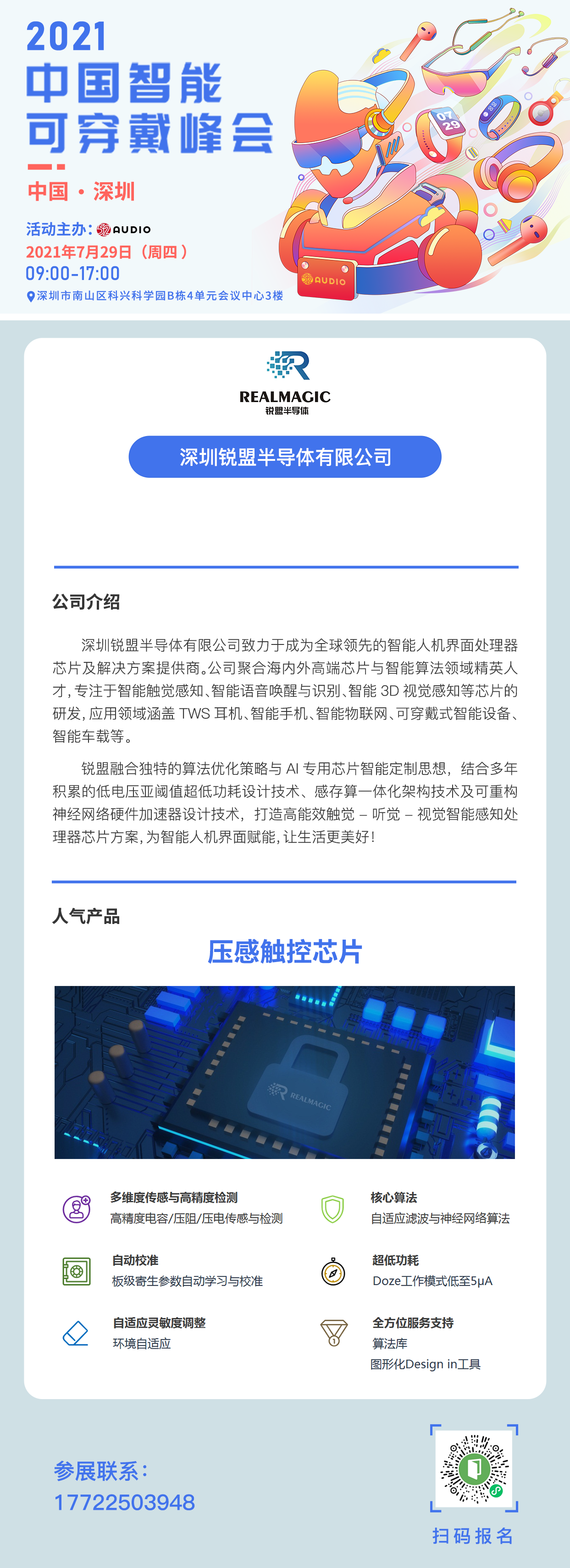 由我愛音頻網主辦的“2021中國智能可穿戴峰會”將于2021年7月29日在深圳市南山區科興科學園舉行。