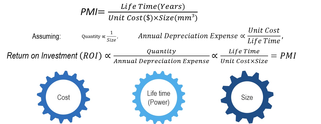 在黎冰博士看來,當下人機交互芯片面臨著低功耗、小尺寸、低成本三大瓶頸,平衡好這三者之間的矛盾,亦是客戶的終極需求。為了解決這一問題,銳盟半導體經過長時間的市場調研,創(chuàng)新性地提出了一個指標,名為“Product Magic Index”(產品魔力指數(shù),PMI),PMI=成本除以待機時間和體積(尺寸)的乘積。同時團隊發(fā)現(xiàn),這一指標與投資回報率成正比關系。
